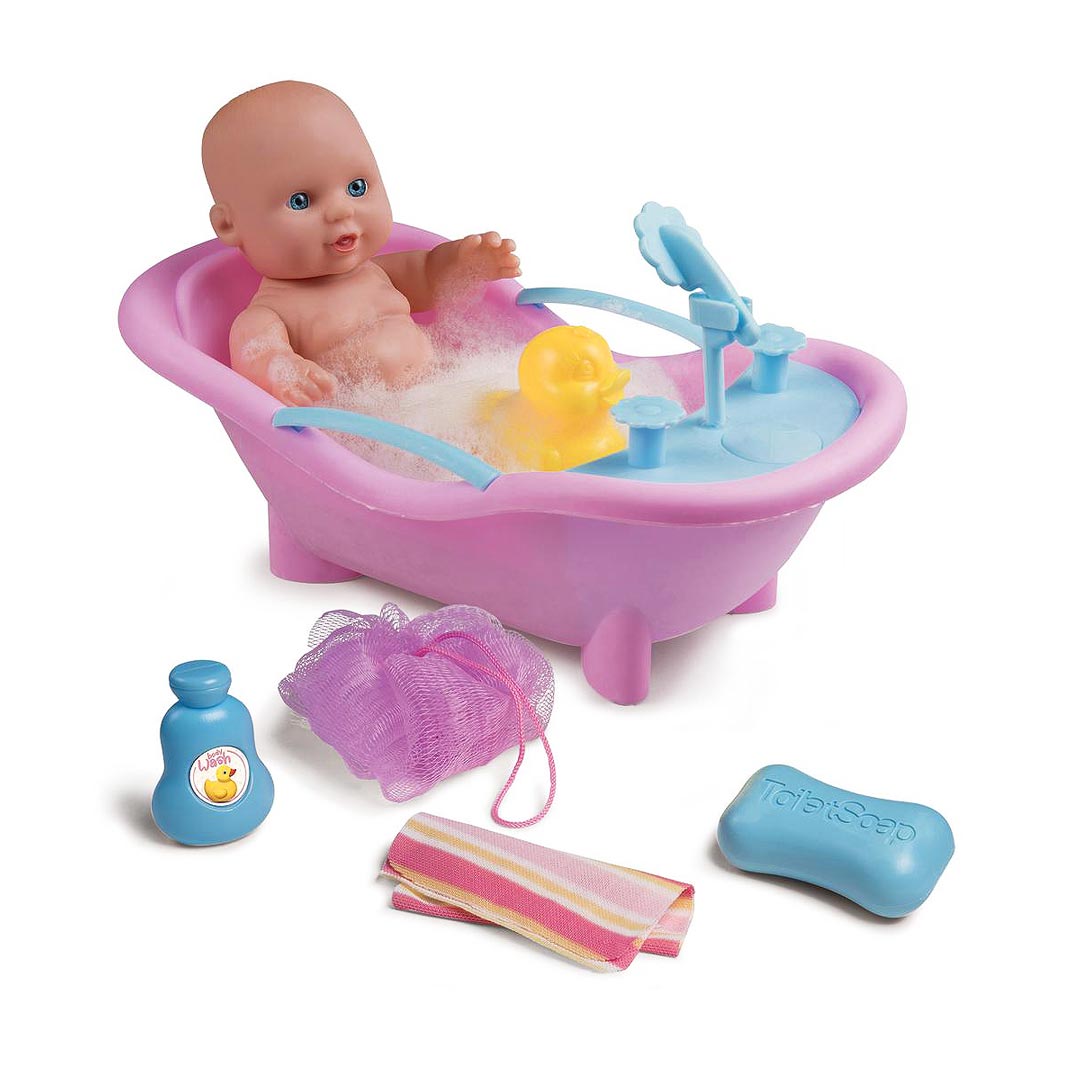 Primi Bagnetti ha tutto quello che serve per fare il bagnetto alla propria bambola! Una bella vasca da bagno rosa con doccino, saponetta, una morbida spugnetta, asciugamano colorato, bagnoschiuma e una simpatica paperella con cui divertirsi in acqua! Incluso nella confezione anche un tenero bambolotto! Come è bello fare il bagnetto!