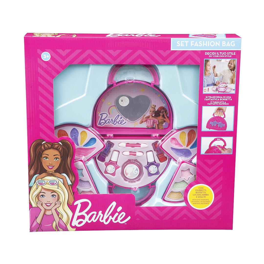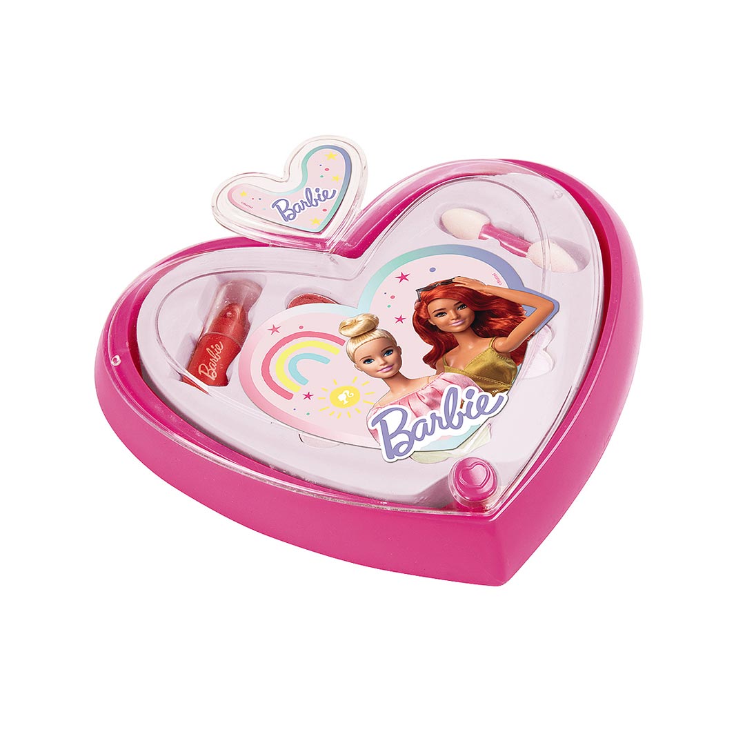 Il meraviglioso cofanetto dei trucchi di Barbie con ombretti e rossetto.