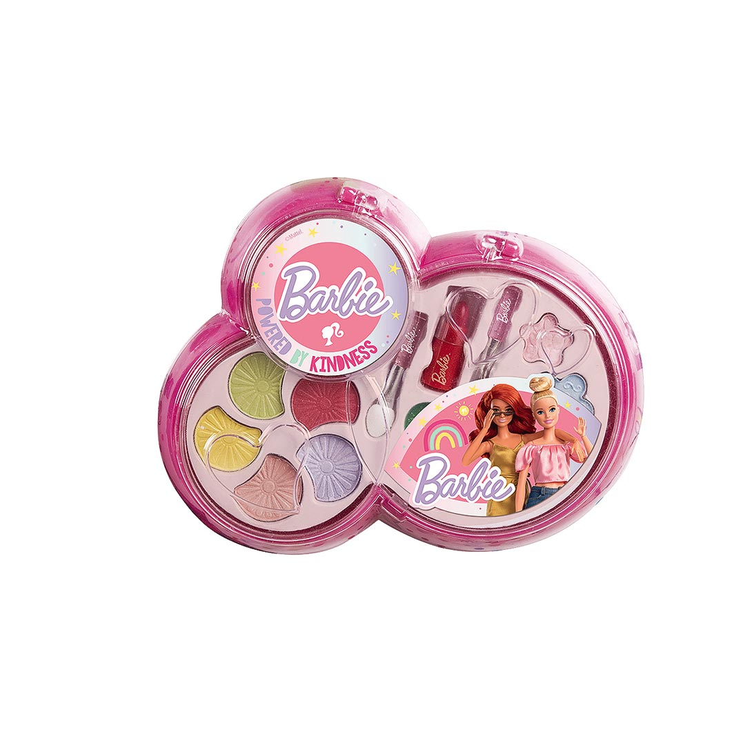 Il meraviglioso cofanetto dei trucchi di Barbie con ombretti e rossetto per tutte le bambine che amano inventare nuovi make up!