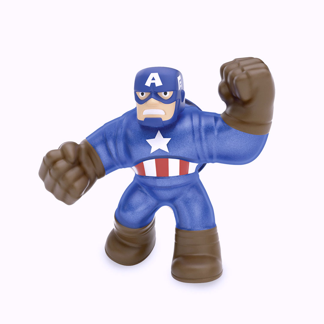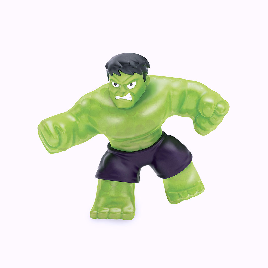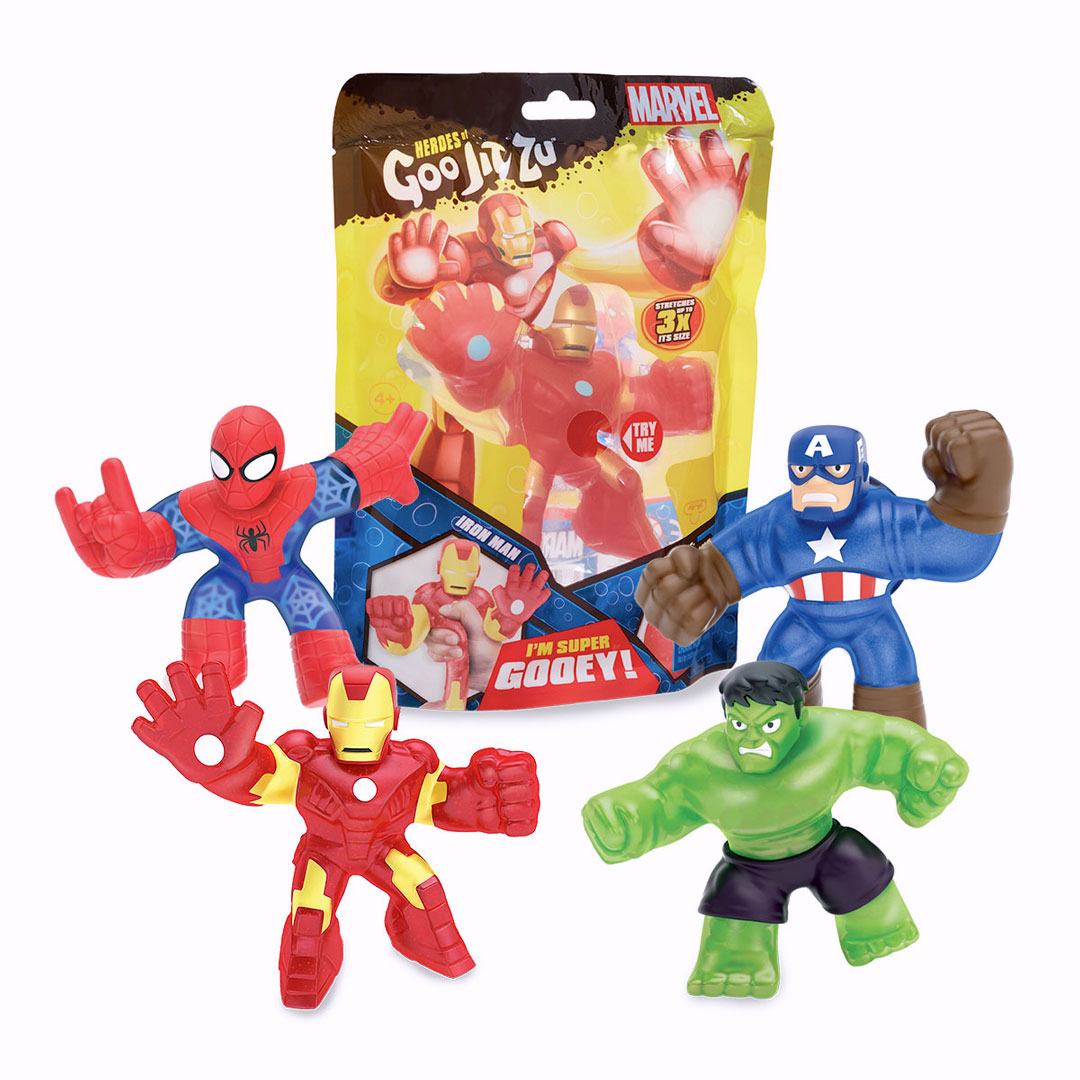 Gli eroi Marvel in versione Goo Jit Zu Goo, da schiacciare e allungare. Assortimento di 4 eroi. Altezza: 13 cm.