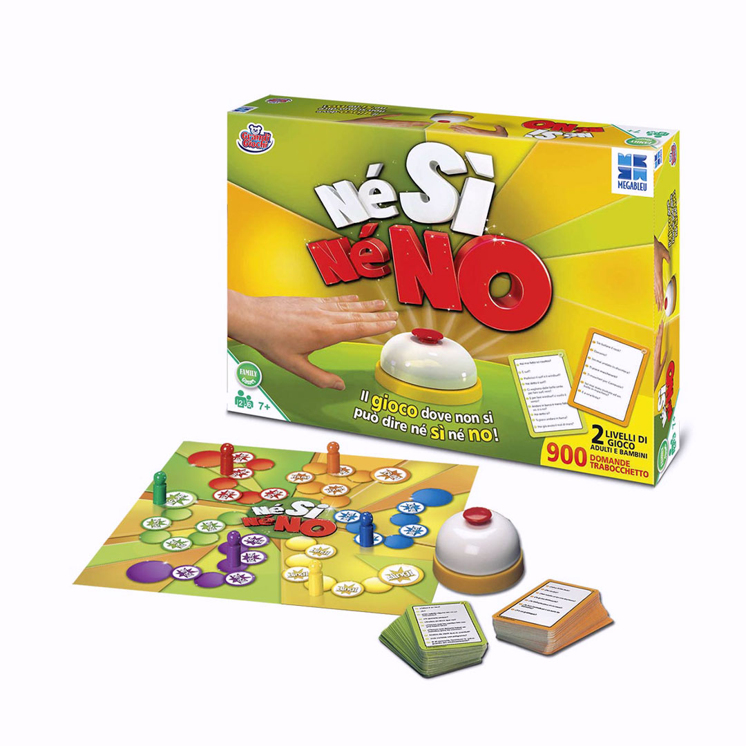 Né Sì Né No è un divertentissimo gioco per tutta la famiglia. 900 domande di storia, geografia, musica, sport e televisione divise in due livelli: bambini e adulti. L’unico problema è che non si può rispondere nè sì nè no. Vince il primo che raggiunge il centro senza farsi ingannare dai trabocchetti.