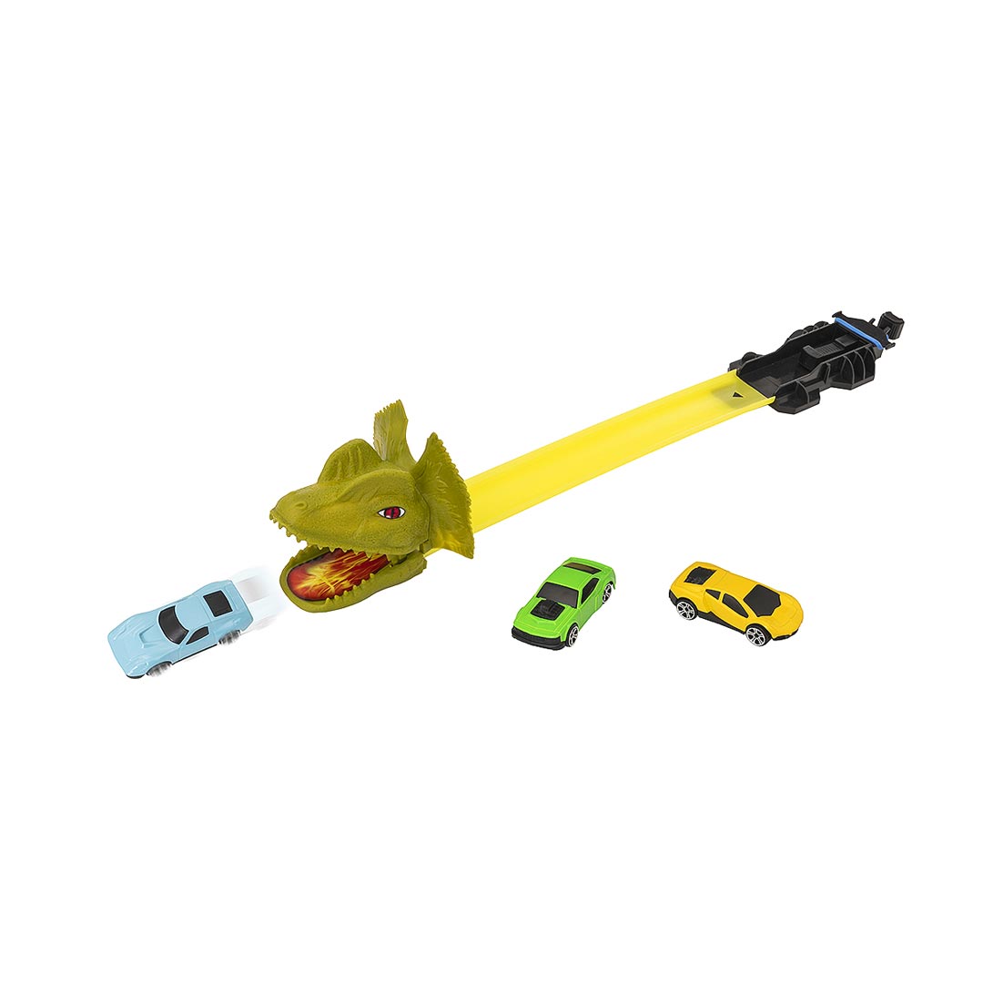 Insegui il dinosauro con il set Teamsterz Dino Hunt. Questo set include un’auto Monster Mni Dino con suoni spaventosi di mostri, suoni del motore e luci lampeggianti. Un elicottero cattura dinosauri con pale dell’elica che ruotano a mano. Un camion da caccia ai dinosauri con sirene e luci di emergenza.