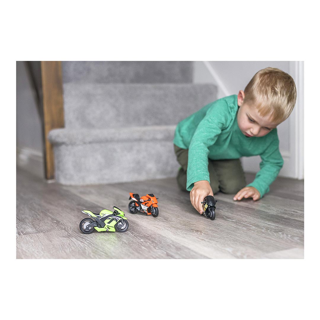 Moderne, aggressive e tutte decorate, le nuovissime moto Teamsterz. I bambini potranno divertirsi in appassionanti sfide all’ultima curva!