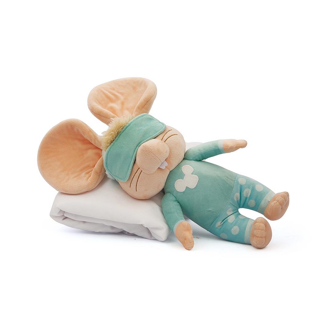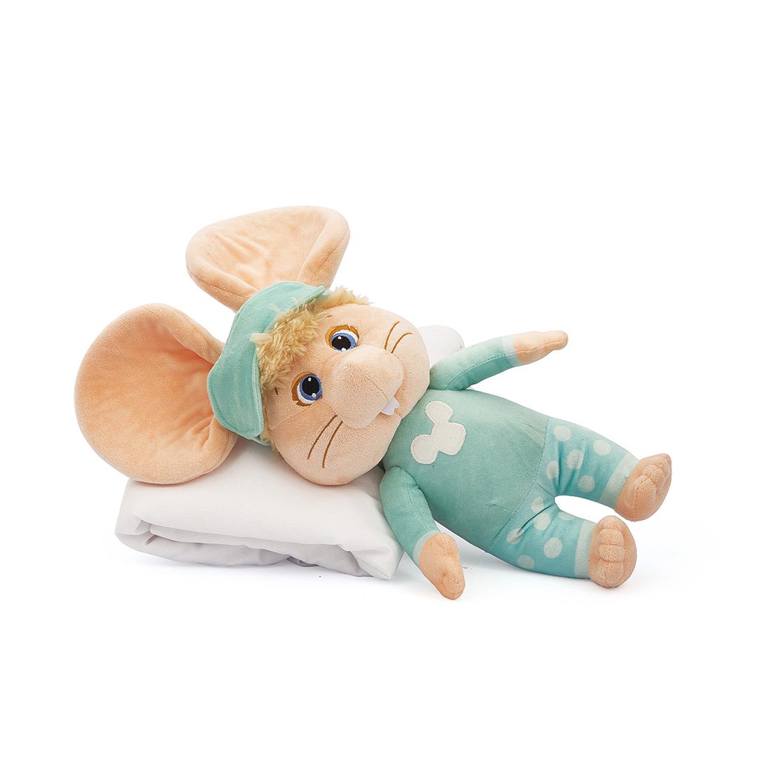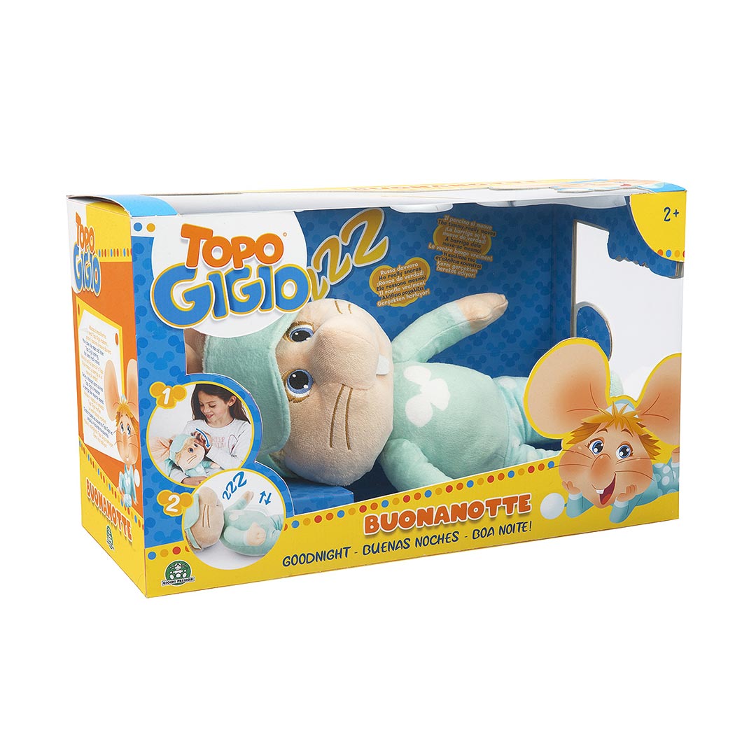 Se vuoi far dormire Topo Gigio, abbassagli la mascherina: comincerà a russare e il suo pancino si muoverà per davvero! Alzando la mascherina, Topo Gigio sarà felice di risvegliarsi con te!